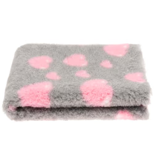 Blovi DryBed A+ - antypoślizgowe posłanie, legowisko dla zwierząt, szare w różowe serduszka - 75x50cm