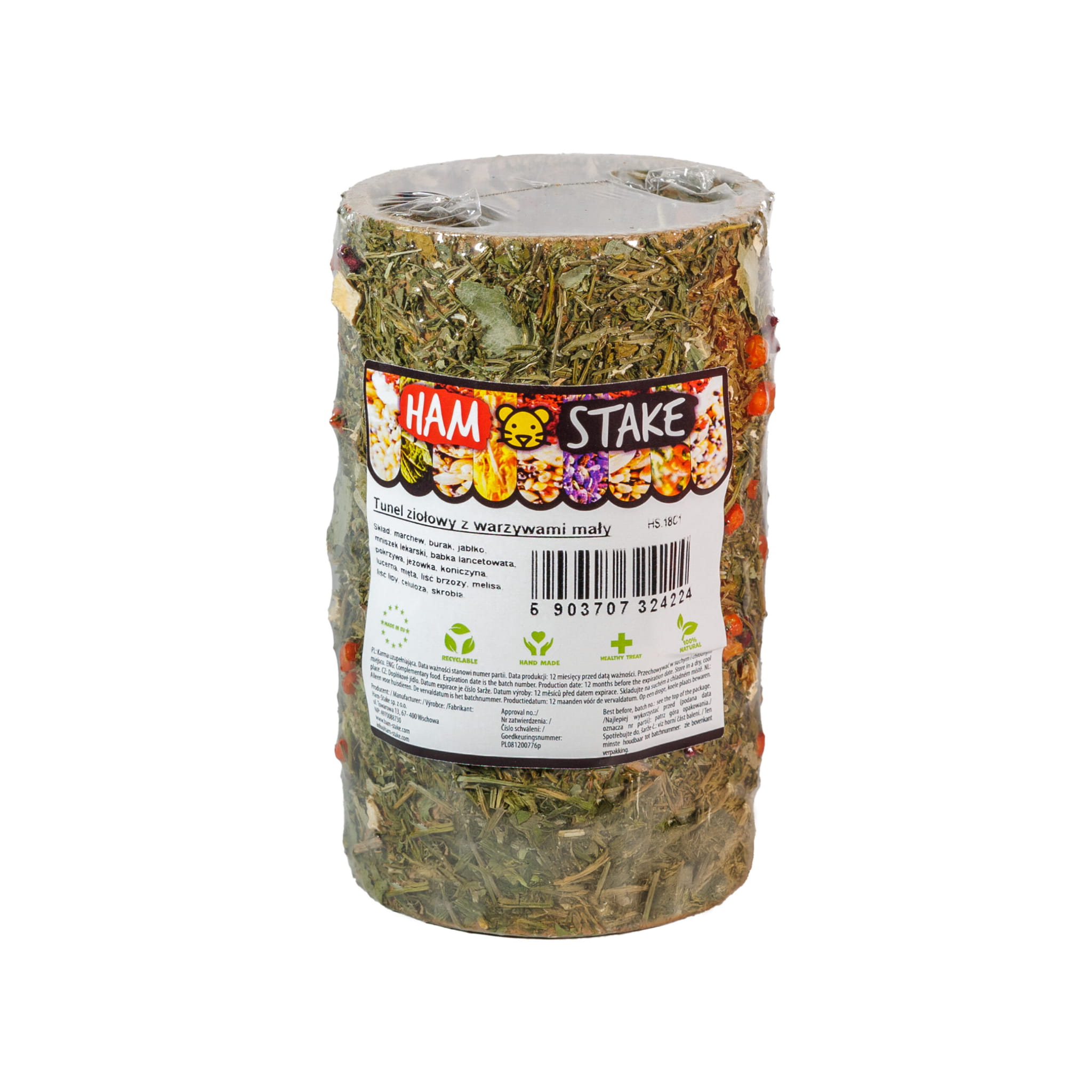 Skład: marchew, burak, jabłko, mniszek lekarski, babka lancetowata, pokrzywa, jeżówka, koniczyna, lucerna, mięta, liść brzozy, melisa, liść lipy, celuloza, skrobia.