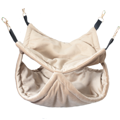 Podaruj swojemu pupilowi dwa razy więcej przestrzeni do odpoczynku i obserwacji otoczenia! Ten dwupoziomowy hamak z serii Velvet został zaprojektowany i uszyty przez nas w Polsce. Wykonany z miękkiego, aksamitnego materiału Velvet i wypełniony owatą, zapewnia ciepło i niesamowity komfort na obu piętrach. Konstrukcja stwarza poczucie bezpiecznej, piętrowej kryjówki, idealnej do snu i wyciszenia.