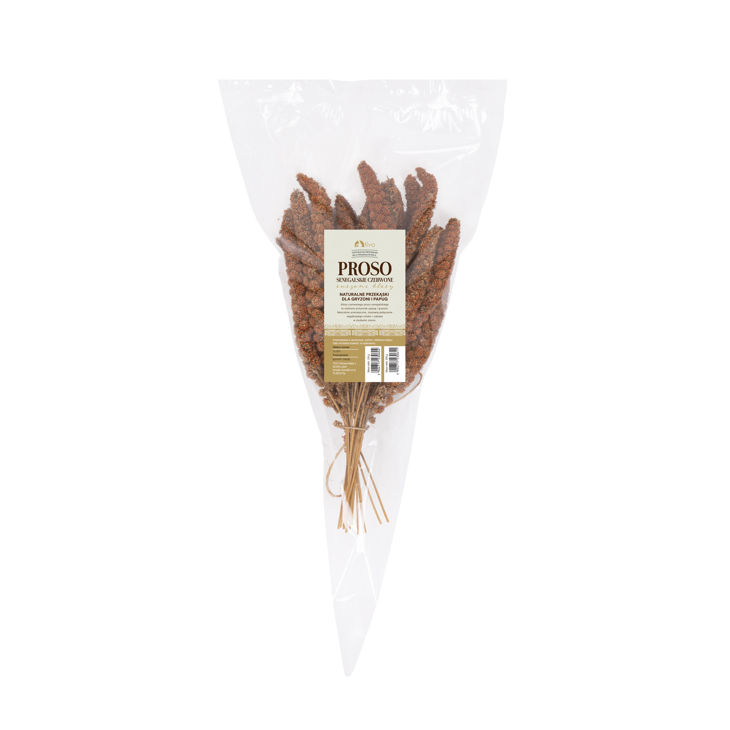 Kłosy czerwonego prosa senegalskiego to ulubiony przysmak papug i gryzoni. Naturalnie aromatyczne, stanowią połączenie wyjątkowego smaku i zabawy w skubanie ziaren.