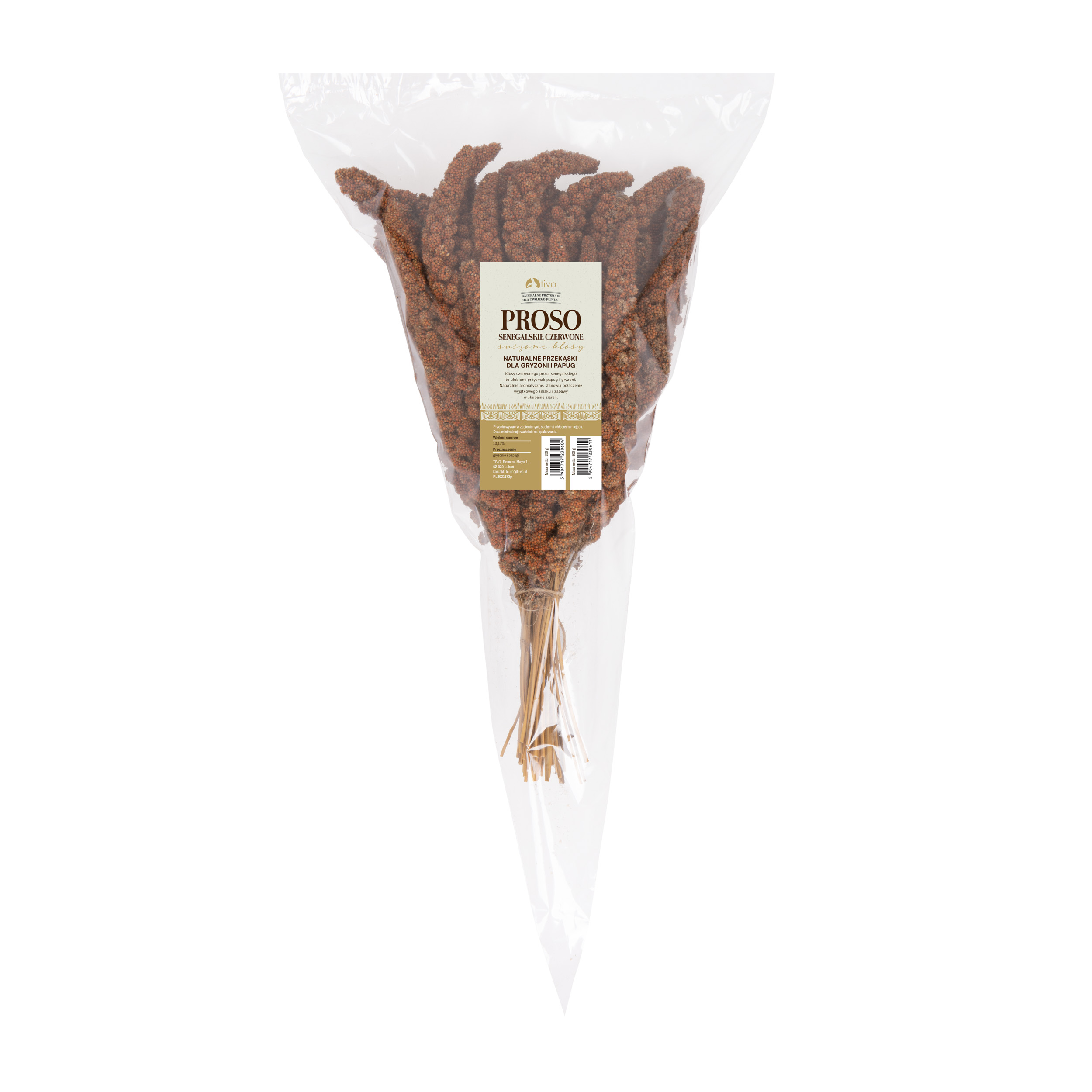 Kłosy czerwonego prosa senegalskiego to ulubiony przysmak papug i gryzoni. Naturalnie aromatyczne, stanowią połączenie wyjątkowego smaku i zabawy w skubanie ziaren.