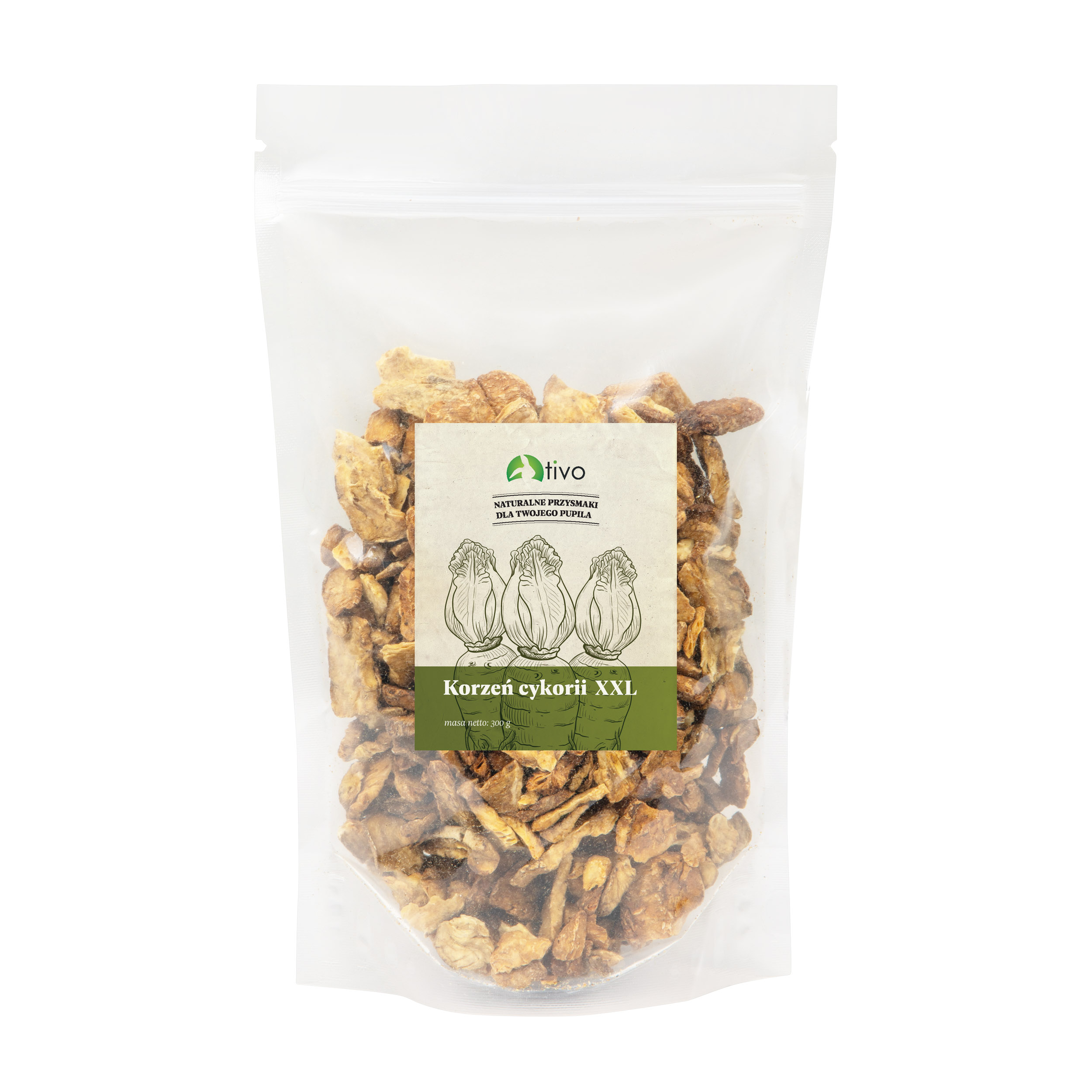 Korzeń cykorii jest naturalnym gryzakiem pomagającym w utrzymaniu prawidłowego stanu uzębienia pupila. Korzeń zawiera inulinę, którą uznaje się za naturalny probiotyk, korzystnie wpływający na trawienie i przyswajanie pokarmu. Cykoria uzupełnia także niedobór niezbędnych mikroelementów.