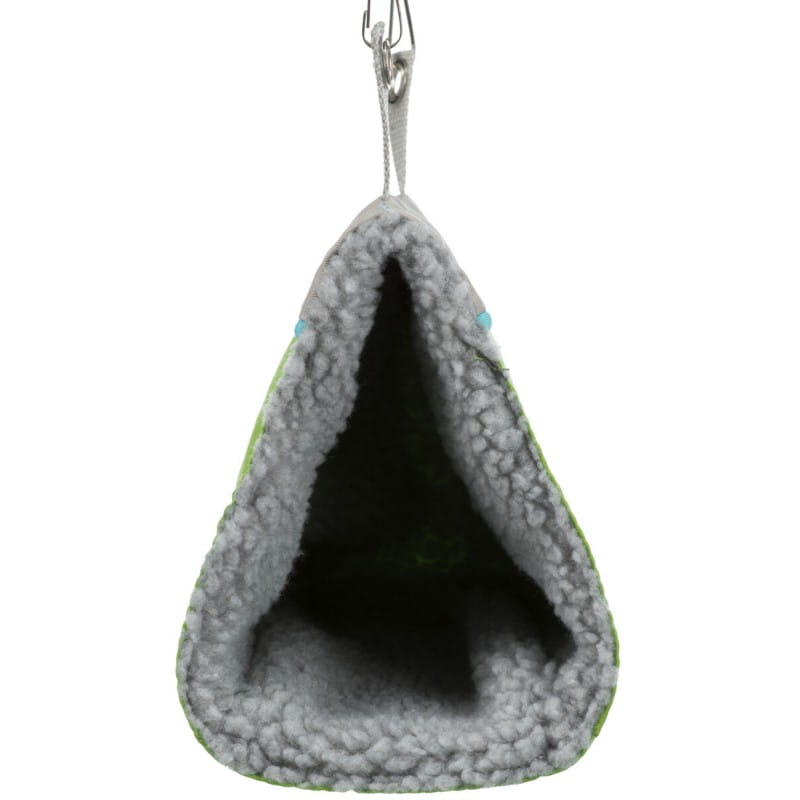 Przytulne legowisko z daszkiem jest idealnym miejscem do spania i wypoczynku dla gryzoni. Zawieszone konstrukcje zapewniają dodatkowe bezpieczeństwo i prywatność. Jest dostępne w różnych kolorach, co pozwala dopasować je do wystroju klatki. Wykonane z wysokiej jakości bawełny lub imitacji owczej wełny (z poliestru), zapewniające komfort i ciepło zwierzętom.